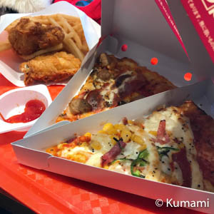 オットと別行動にして、ツマは休み休みおりて…休憩! もう1本ゴンドラにのったオットを待ってるうちにピザーラが開店したので、朝ごはんにしました。